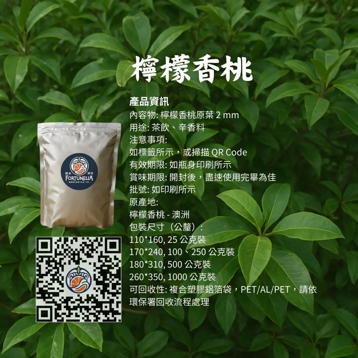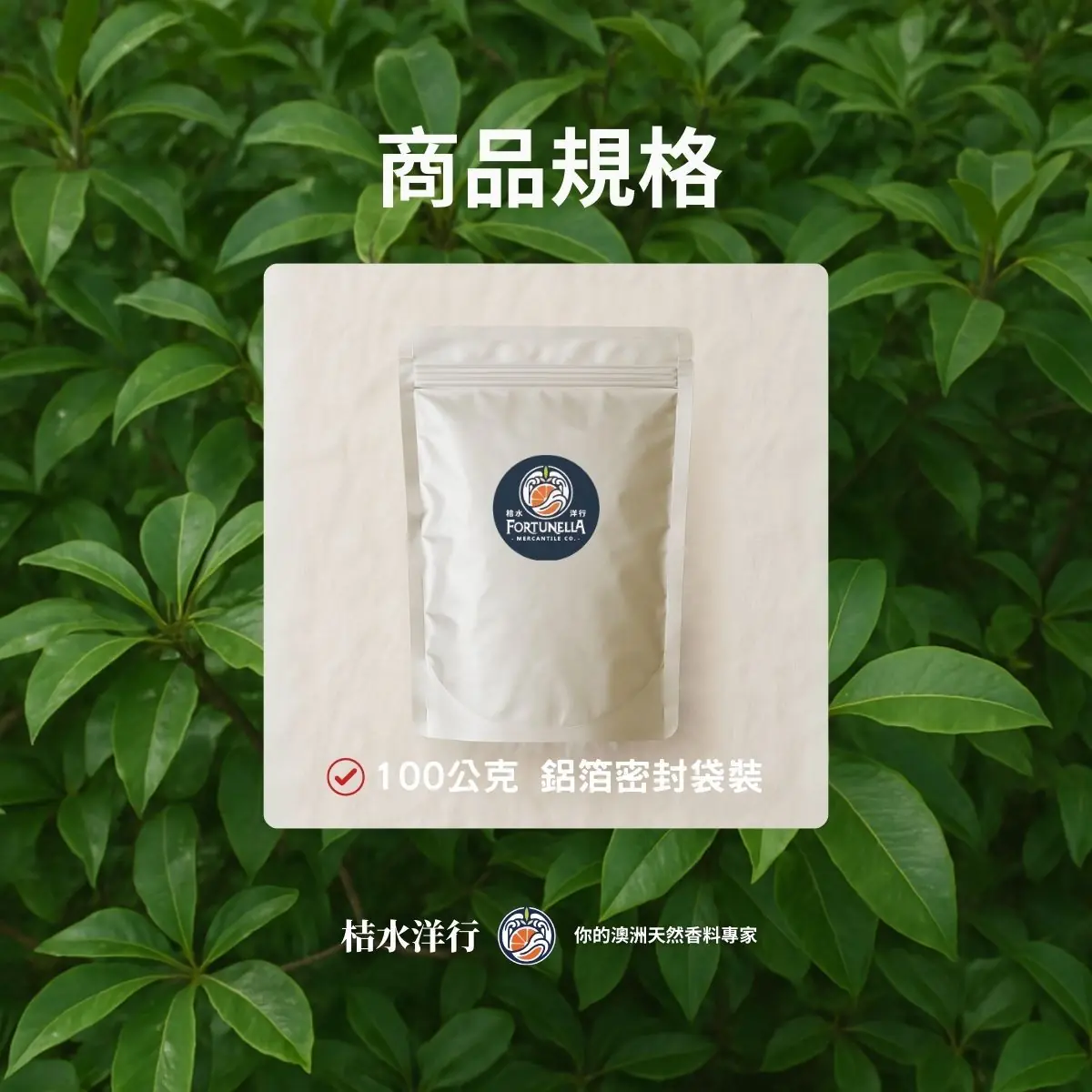 - 包材:外包裝 — 鋁箔密封袋。